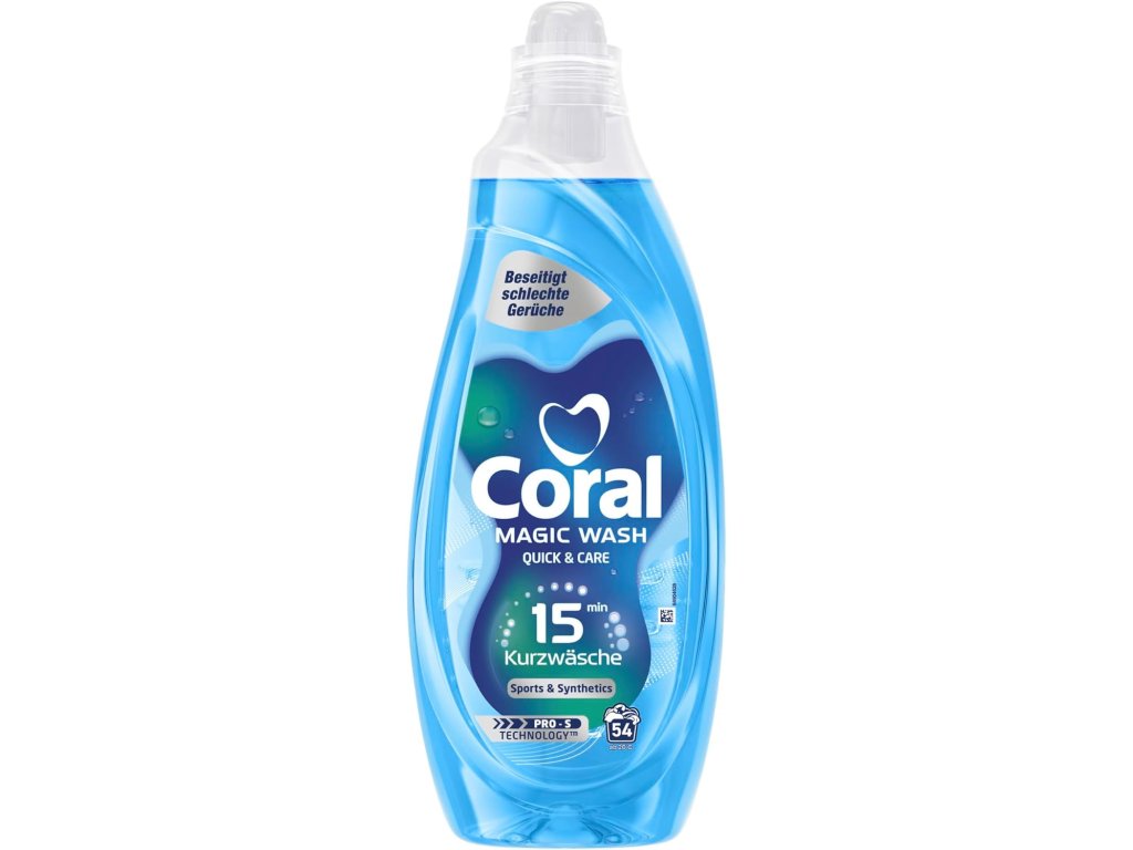 Jste milovníci sportu, outdoorových aktivit? Máte své oblíbené sportovní outfity? Potřebujete být rychle připraveni na další tréninkové dávky? Zažijte zázrak rychlého praní sportovního a syntetického oblečení za pouhých 15 minut: Coral Magic Wash Color Sports & Synthetic nabízí bleskově rychlé praní a důkladné odstranění zápachu díky inovativní technologii PRO-S, která zajistí, že vaše sportovní a syntetické oblečení bude z pračky zářivě čisté a svěže vonící. Ideální pro sportovní oblečení po tréninku.