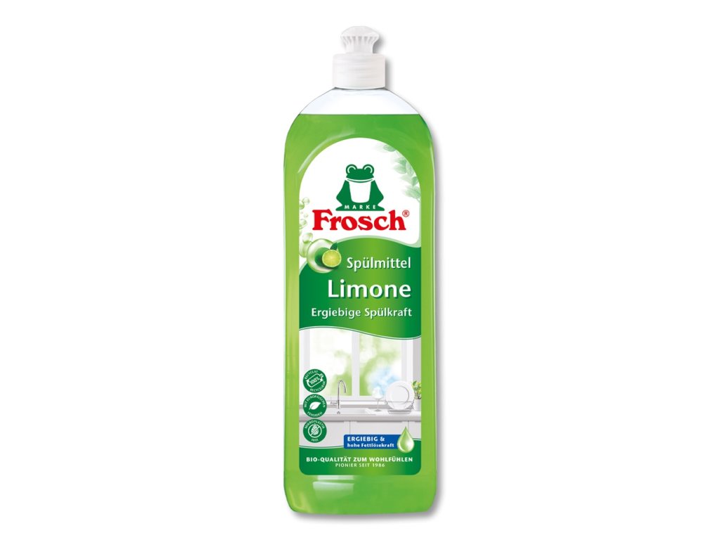Mycí prostředek na nádobí Frosch Spülmittel Limone má neutrální pH a jeho vynikající snášenlivost s pokožkou byla dermatologicky testována. Silné složení s citronovým extraktem odstraní mastnotu a nečistoty, zajistí zářivě čisté nádobí. Díky Bio kvalitě a neutrálnímu pH nedráždí pokožku rukou.
