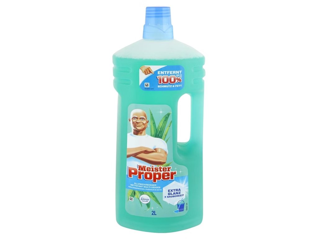 Víceúčelový čistič Meister Proper ve velikosti XXL ( 2 l ) je dostupný v několika vůních. Je ideální pro téměř všechny omyvatelné povrchy. Víceúčelový čistič Meister Proper můžete použít na dřez, mastnotou znečištěné varné desky a dokonce i jako čistič podlah. Víceúčelový čistič zajišťuje čistotu a lesk bez zanechávání šmouh po čištění Upozornění: Povrchy, které přicházejí do přímého kontaktu s potravinami, po vyčištění důkladně opláchněte vodou. Produkt používejte opatrně. Před použitím si vždy přečtěte etiketu a informace o produktu.